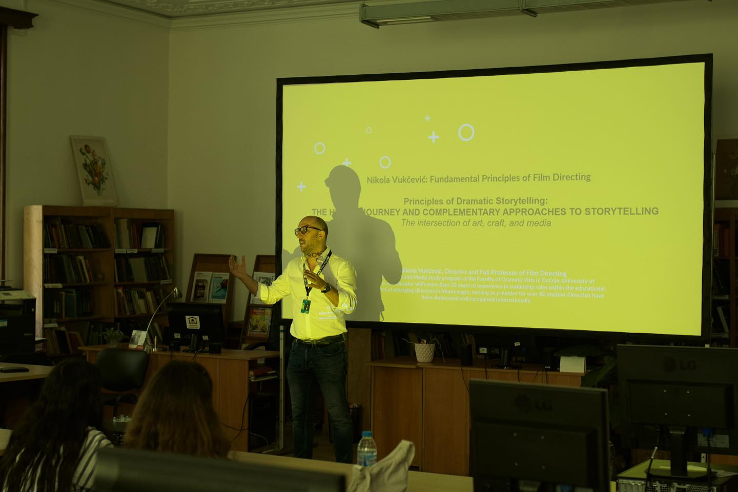 Pored njih, prof. dr Nikola Vukčević, boravio je na festivalu kao član žirija u selekciji univerzitetskih filmova iz cijelog svijeta i kao predavač stručnog masterclassa na temu „Rediteljski postupak između umjetnosti i zanata: Herojev put i komplementarni pristupi“, koji je održan pred međunarodnom grupom studenata, kojima je ujedno predstavljen i postupak studiranja na studijskom programu FILM I MEDIJI na FDU Cetinje. Festival In the Palace nosilac je EFFE etikete (Europe for Festivals, Festivals for Europe), koja se dodjeljuje manifestacijama sa visokom umjetničkom vrijednošću, lokalnim angažmanom i međunarodnim značajem.