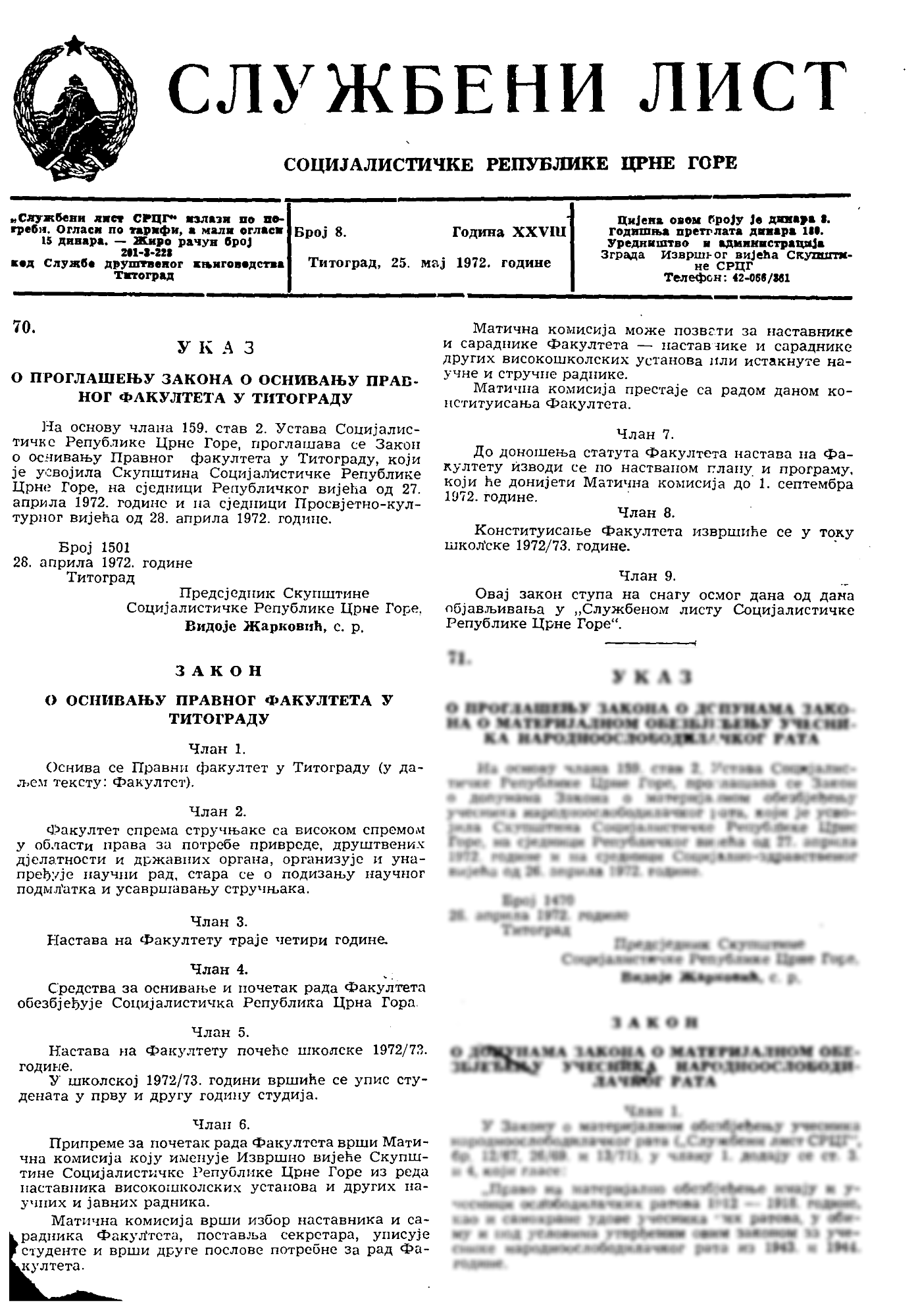 Pravni fakultet je jedan od utemeljivača Univerziteta Crne Gore.
